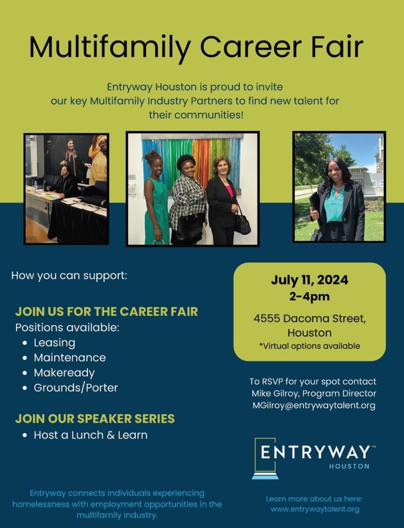 Entryway Houston is hosting a Career Fair on 07/11/2024 from 2pm - 4pm at 4555 Dacoma Street Houston